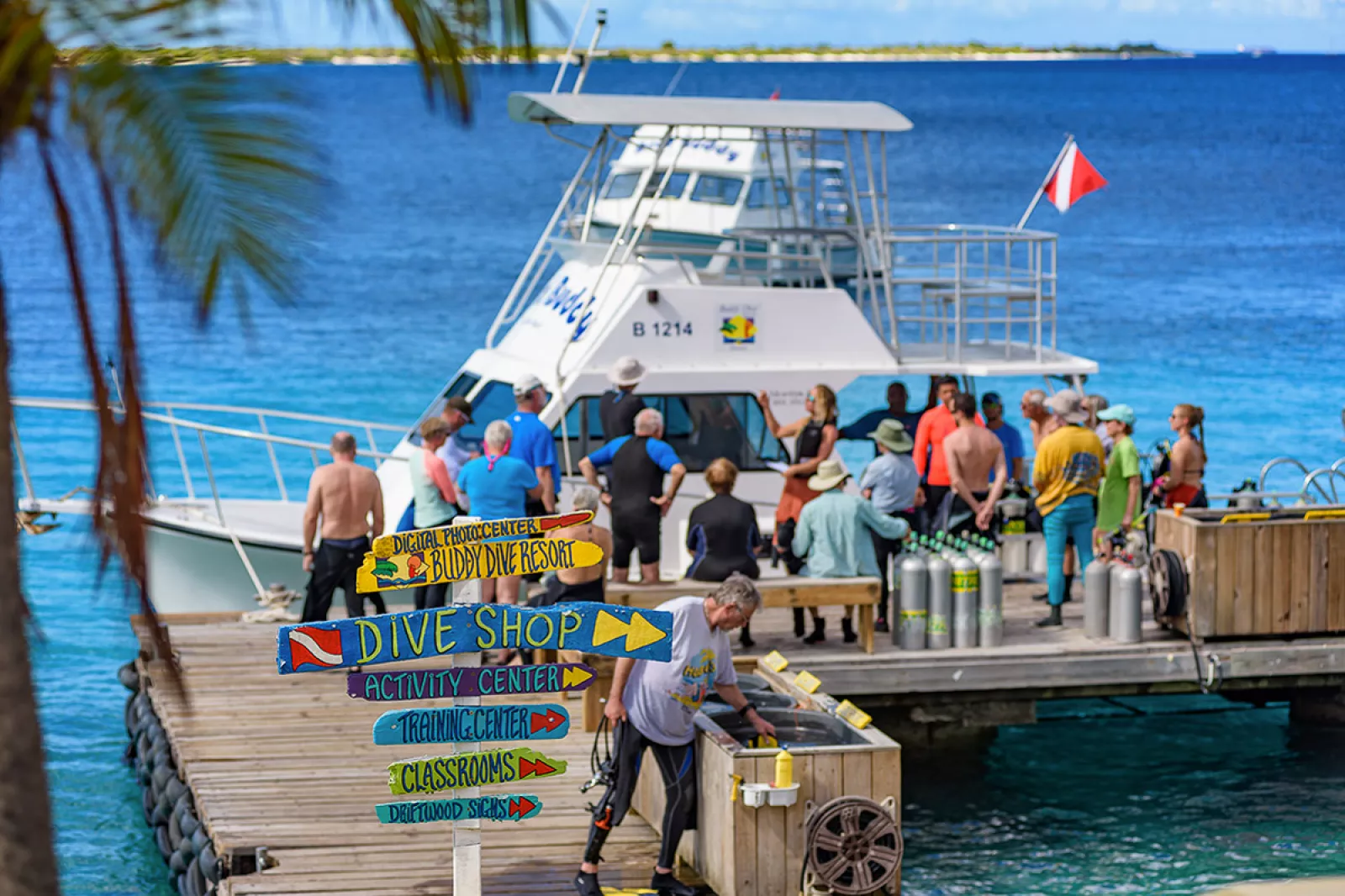 Buddy Dive é um dos melhores resorts de mergulho de Bonaire, famoso por suas acomodações em estilo apartamento com todos os confortos de casa, bem como por um conveniente centro de mergulho no local. Saia da cama e entre na loja de mergulho, localizada a poucos passos da sua porta, ou pegue seu amigo e os tanques de mergulho do dia e pegue a estrada para uma aventura autoguiada. Com as opções flexíveis deste hotel, você certamente encontrará algo que se adapte ao seu estilo pessoal de viagem. As instalações adicionais incluem duas piscinas cintilantes, vários locais para refeições e bebidas, docas privadas e acesso a um amplo recife doméstico.